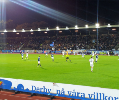 250 Ultras/Supporter auf Heimseite mit dauerhaften, lauten Gesängen. Dem aktiven Kern hinter den Bannern „Fabriken“, „Ultras“ und „Alltidoavsett“ kann ein solider Auftritt bescheinigt werden. Im Gästeblock fanden sich 40 Personen ein, wobei nur die Hälfte sporadisch aktiv wurde. Es „hing“ nur der „Gais Tifo“ Banner.